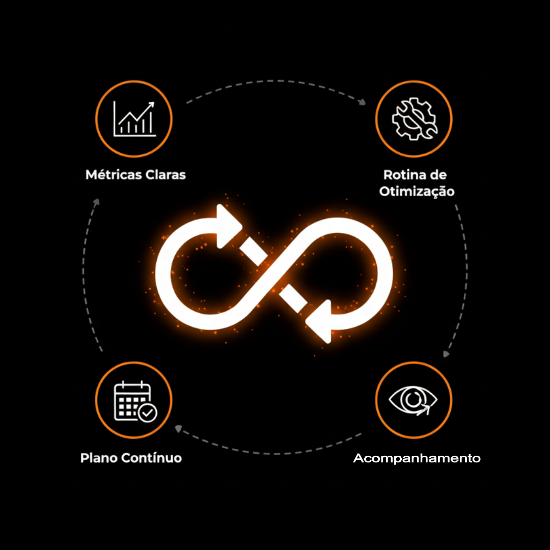 Criamos um plano contínuo para gerar novos clientes todos os meses — com métricas claras, rotina de otimização e acompanhamento.